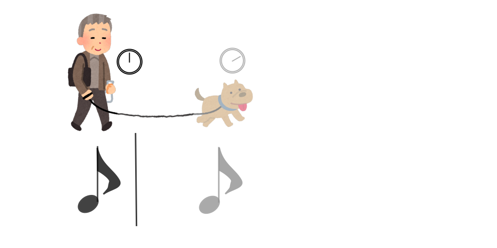 弱拍が先行する感覚を持つ人は、過去に起きた出来事を観察し、それを基にして次に起こること(次の拍)を予測します。彼らは次の拍の位置を予測して前もって自分の拍を準備し、常に自分の認識する時間軸のなかで基準となる出来事よりも「前」に位置しているのです。