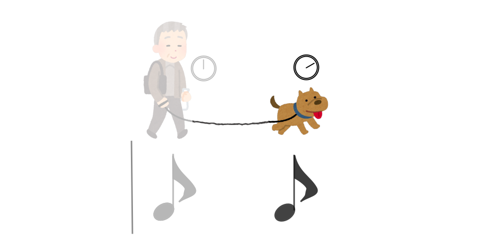 しかし現実の音楽演奏では、テンポは自然に揺れ動くものです。過去の拍から正確に一定間隔を測ったとしても、それが次の拍の位置と正確に一致するとは限りません。したがって強拍が先行する感覚の人は、一般的に一定したテンポを維持することが難しいのです。